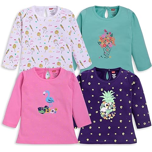 LuvLap Baby Girls 100% Cotton Regular Full Sleeve Top Pack of 4
