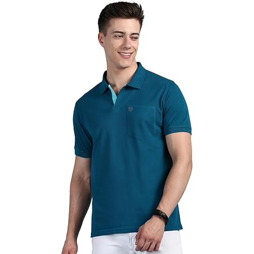 - Lux Cozi Men’s Regular Fit Polo Neck Half Sleeve Solid Casual T-shirt With Chest Pocket, stylish and comfortable choice for casual wear.