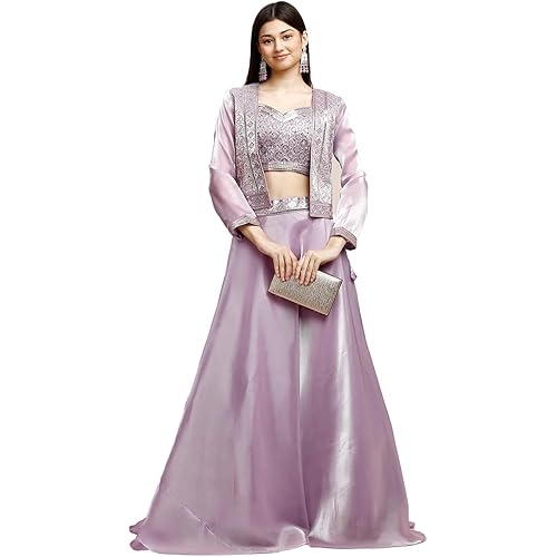 - STAND OUT FROM THE REST: Keeping in mind the latest fashion trends, this designer Kurti is made to help you make a bold fashion statement. The solid Lavender/Purple Lehenga And Choli With Short Jacket dress for women’s Latest Design pattern highlights the color of your choice which is accented further.