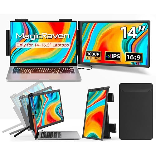 455394 reviews for MagicRaven Laptop Screen Extender, 14″ 1080P Portable Monitor, 250° Rotation Travel Display for 14-17” Laptop with USB-C HDMI Port, Plug and Play for Windows/Mac