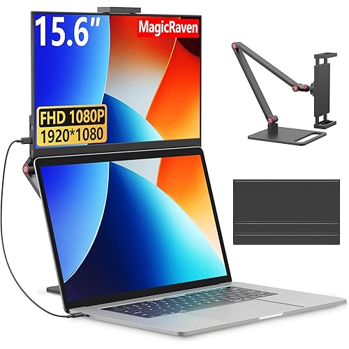 - 【Increase your Productivity】: MagicRaven laptop monitor can be used as the main screen alone. Also, you can mirror your laptop screen with your colleagues in meetings or extend your laptop window tags for multi-tasks, increasing productivity by 200%. Mirror your phone screen to enjoy a clear movie or duplicate your Switch to gain a better gaming experience. Optional landscape and portrait modes can be adjusted to handle different work like editing photos, reading documents, and analyzing data.