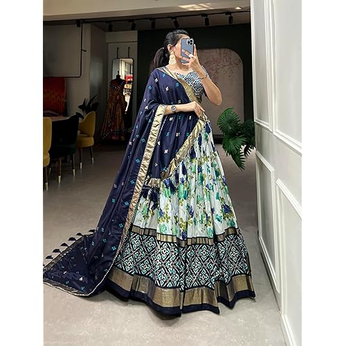 7 reviews for MAIRA FASHION Women’s Tussar Silk With Leheriya And Foil Print Lehenga choli Set (NAVYBLUE2)