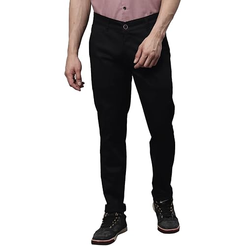 Fabric:- Cotton Lycra blend stretch fabric for ease of movement This is a slim-straight fit trousers that sits close through waist & thigh and falls straight from Knee to ankle. Featurs:-Basic 5 Pocket Trouser; Slant Pocket,Flat front,Zip fly with bu… read more