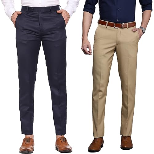 MALENO Men Formal Trouser Regular Fit Solid | Soft and Breathable Pant Combo (Pack of 2)