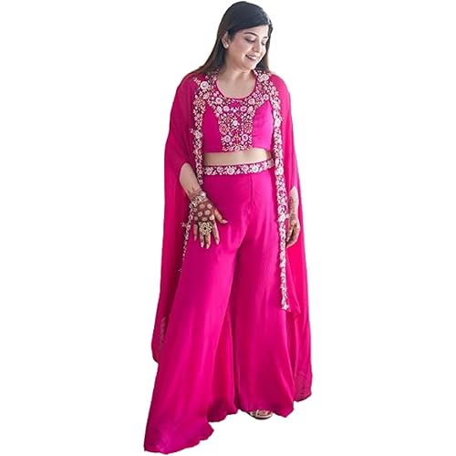 MARUTI FASHION HOUSE Lehenga Choli For Womens And Girls Ready To Wear indo-Western Sharara Hevay Chinon Fabric With Thred with Sequnce Work And Stiched Blouse