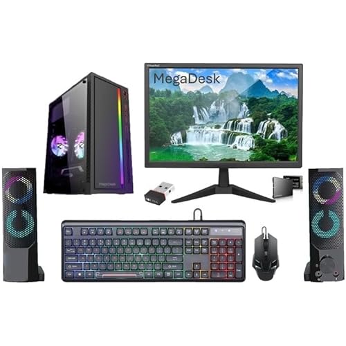 MegaDesk FZ10 Desktop Computer Set, i5 2400, 16GB RAM, 500GB SSD, 19-inch HD LED Monitor, RGB Keyboard Mouse, Sound Bar, Windows 10 (16-500GB)