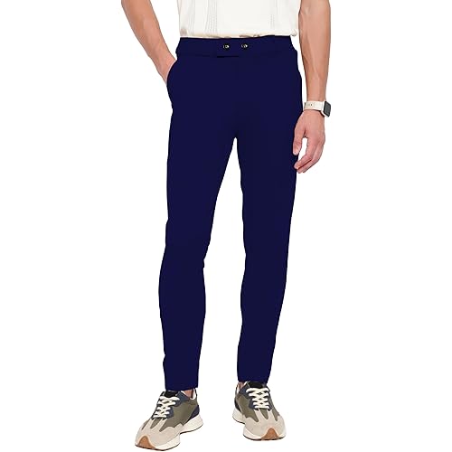 Stretchable Polyester Chinos Fabric for Ease of Movement Solid pattern II Comfortable everyday chinos Side slant pockets and back welt pockets Zip fly with button closure Pair it up with a solid casual shirt or a Polo and white sneakers for a stylish… read more