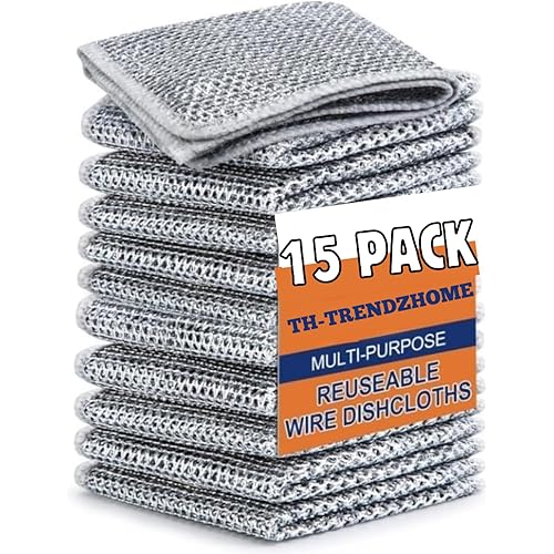 MIP INTERNATIONAL® (15 Pack) Non-Scratch Dish Wash Cloth, Steel Wire Dish Cloth, Wire Dishwashing Rags Stainless Steel Scrubber Non-Scratch Wire Dishcloth for Washing Dishes Sinks Counters