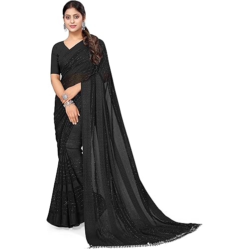 MIRCHI FASHION Women’s Georgette Solid Saree with Blouse Piece