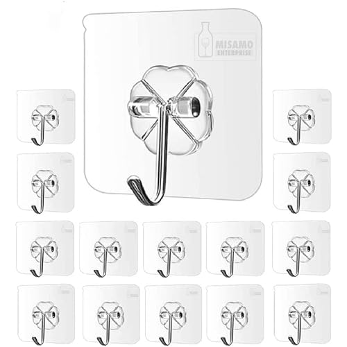 Misamo Enterprise PVC Wall Hooks, Pack of 15, Transparent