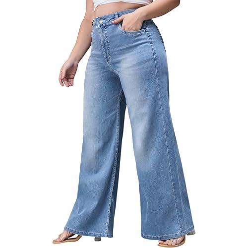 Miss Chase A+ Women’s Wide Leg High Rise Regular Length Stretchable Denim Jeans
