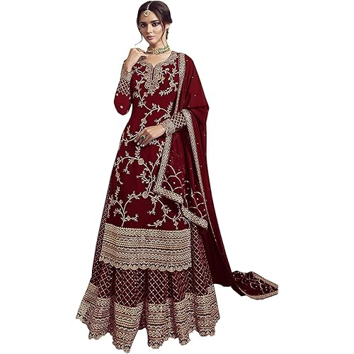 Color : maroon; Top fabric : faux georgette with santoon inner || bottom fabric : faux georgette with santoon inner || dupatta fabric : faux georgette Work : embroidered || type : kurta palazzo set Please read the products description below for full … read more