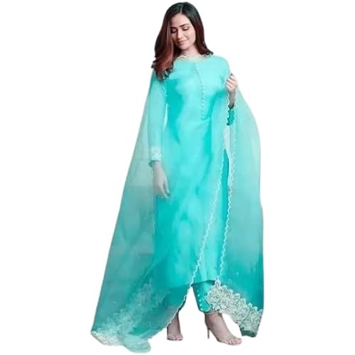 Mollymode Fashion Women’s Indian Salwar Kameez, Kurta Pant Dupatta Set, Blue