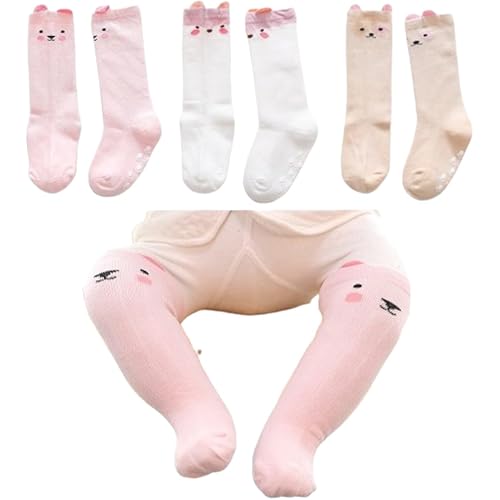 MOMISY 3 Pairs of Baby Kids Children Anti Skid Sleep Spring Winter And Autumn Combed Cotton Long Tube Knee-High Socks