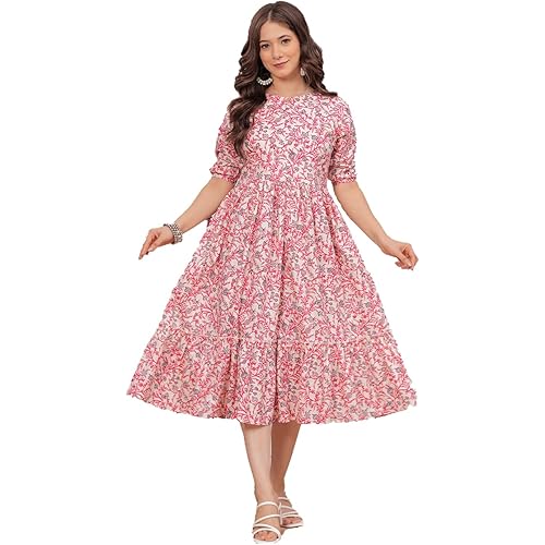 Monique Brand Women’s/Girls Cotton Kurta for Women Floral Printed Anarkali Kurta || Floral Flared Western Dress