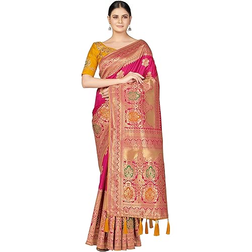 Monjolika Fashion Women’s Banarasi Silk Blend Woven Work Tussles Saree With Unsttiched Blouse Piece (Monjolika 45560_color)