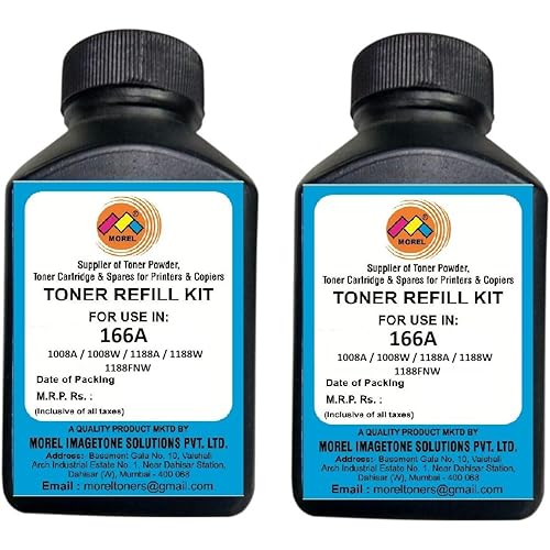 morel 166A Toner Powder (80 GM) for HP Black Laserjet 1008A / 1008W / 1188A / 1188W / 1188FNW Printers (Pack 2)