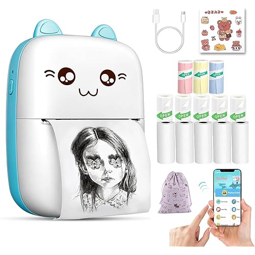 - MINI BLUETOOTH THERMAL PRINTER: Bluetooth inkfree thermal printer allow you can print out various photo, patterns, including lable and sticker, mini printer with App operation. Support both iOS and Android phone. Coming with 5 roll of print paper of 57x25mm, 5 roll of self-adhesive print paper and a set of stickers, meeting your various needs of printing, great value pack.