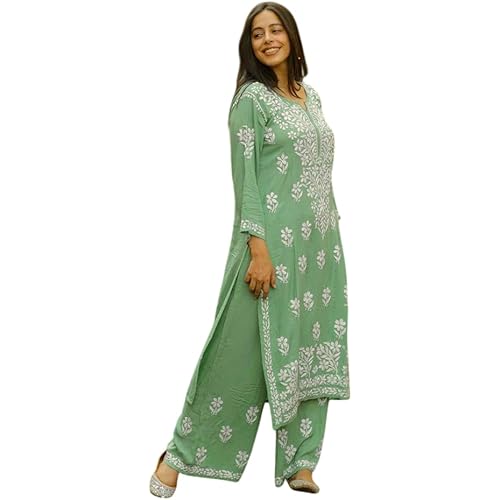 MRSWEARS Women’s Regular Fit Ready to Wear Heavy Cotton Rayon Embroidery Work Chikankari Kurta Set (Top & Bottom)