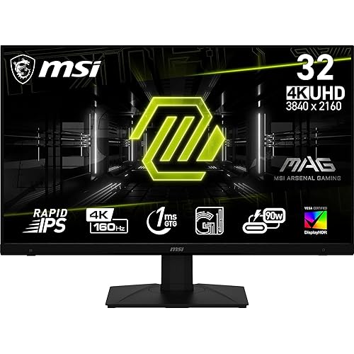MSI MAG 322UPF 32 Inch UHD Gaming Monitor – 3840 x 2160 Rapid IPS Panel, 160 Hz/1ms GtG, 125.7% sRGB Colour Gamut, Frameless Design, DisplayHDR 400 – DP 1.4a, USB Type-C, HDMI 2.1 CEC