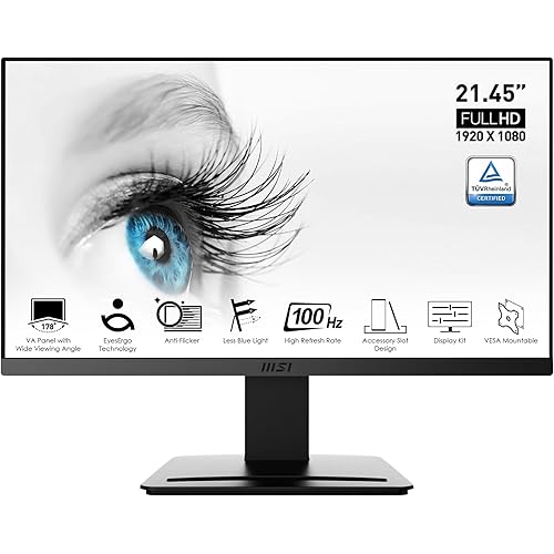 1644 reviews for MSI PRO MP223 21.45 Inch Full HD Office LCD Monitor – 1920 X 1080, 100 Hz, Eye-Friendly Screen, VESA Mountable, Display Kit Support, Tilt-Adjustable – HDMI 1.4b, D-Sub (VGA)