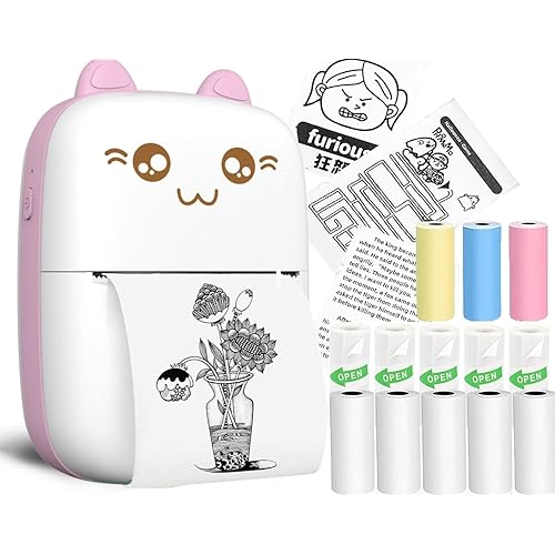 MTC Mini Bluetooth Thermal Printer, Portable Label Printer Inkfree Printer for Android & iOS System, Black on White Thermal Printer with Roll of Print Paper, Stickers