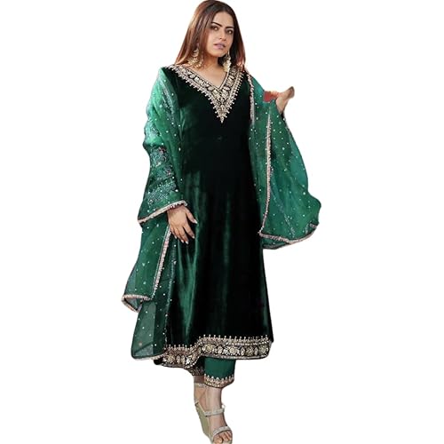 MV SUPER HUB Women’s Viscose Velvet With Embroidery Sequence Work Kurti With Palazzo and Dupatta Set