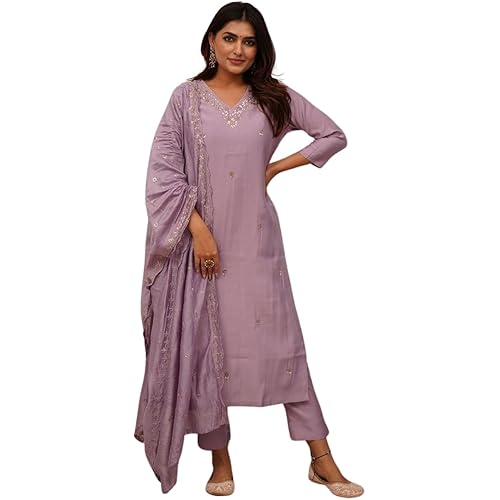 Kurta Fabric:- Viscose Silk || Bottom Fabric:- Viscose Chanderi || Dupatta Fabric:- Chanderi Kurta Work:- Embroidered || Dupatta Work:- Embroidered Package Contains:- 1 Set : KURAT, PANT AND DUPATTA Size Details: Bust- 36 || Kurta Waist- 34 || Hip- 3… read more