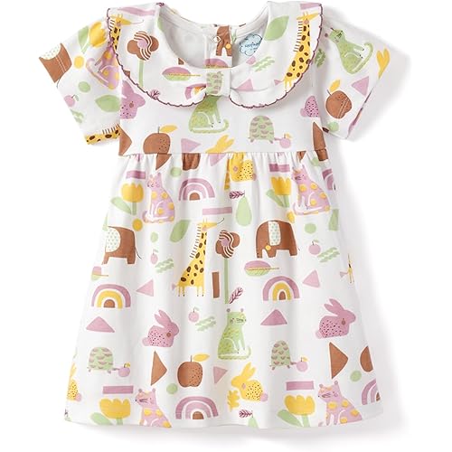 - Designed for ‘Aww’dorable Moments- This dress features a charming Peter Pan collar and a convenient back opening adorned with an all-over print, tailored for infants aged 0-3 years.This dress features vibrant colours, perfect for brightening up your young child’s wardrobe.The cap sleeves on this dress keep things cool and let your little miss move with playful ease.