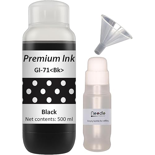 Needle GI71 Compatible Refill Ink | Made in India | for Canon Pixma G1020 G2020 G3020 G2060 G3060 G1737 G2770 G3770 G4770 G1730 G2730 G3730 Printers (Black – 500gms with Empty Bottle & Funnel)