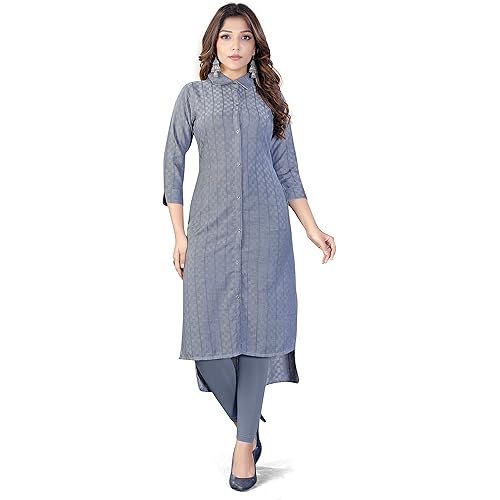 NeedleTale Long Kurtis for Women Stylish Cotton Based Viscose Rayon Kurti for Women and Girls Kurti for Office Wear Collar Kurtis for Women