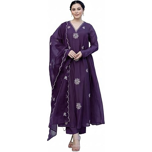 445323 reviews for Nermosa Women Embroidery Solid Anarkali Kurta and Pant Set with Dupatta