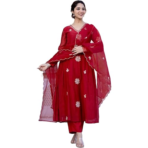 445449 reviews for Nermosa Women Embroidery Solid Anarkali Kurta and Pant Set with Dupatta