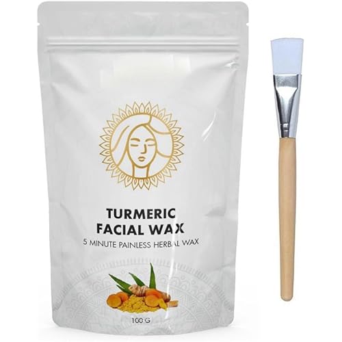 New Turmeric Facial Wax HAIR REMOVAL – TURMERIC FACIAL WAX – 5 MIN PAINLESS HERBAL POWDER Wax Wax (100 g) WITH 1 APPLICATOR BRUSH