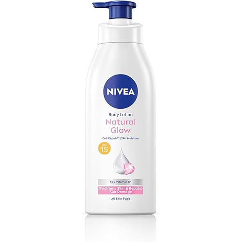 43523311 reviews for NIVEA Body Lotion Natural Glow,Cell Repair With Uva/Uvb Filters And Spf 15|50X Vitamin C For Even Skin Tone|Light Moisturising, Non-Greasy Formula With Cooling Sensation|Glowing Skin For Unisex|400 Ml