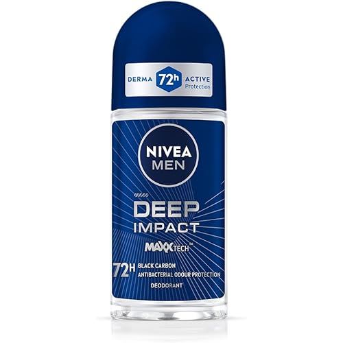 43539628 reviews for NIVEA MEN Deep Impact Freshness Deodorant Underarm Roll-on | 72 H Long Lasting Freshness | Infused with Black Carbon to fight bacteria and body odour | Woody masculine fragrance | 0% Alcohol | Dermatologically Approved & Paraben Free Formula | 50ml