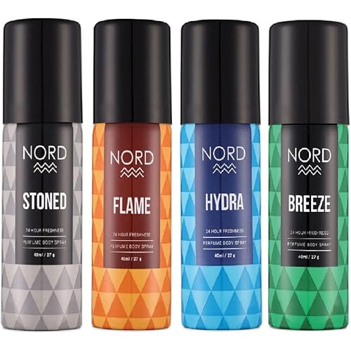 803 reviews for NORD Intense Deodorant sprey Travel Pack Gift Set for Men with Flame, Breeze, Hydra and Stoned Mini Deodorants for Men, Pack of 4 (40ml each) | Gift for Men