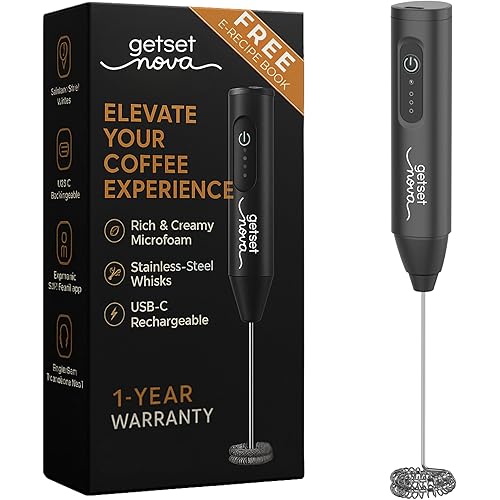 4654464 reviews for Nova Milk Frother Rechargable Coffee Frother Milk & Beater for Cold Latte 2In1 Handheld Battery-Powered Blender and Egg Whisker | 1 Year Warranty Free Frothy Recipe E-Book (Whisker), Black