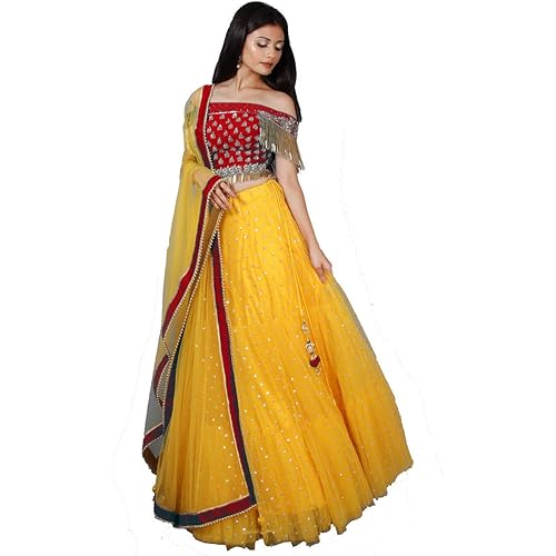 NPLASH FASHION Women’s Net Semi stitched Lehenga Choli Roop Lengha choli (Yellow) Free Size