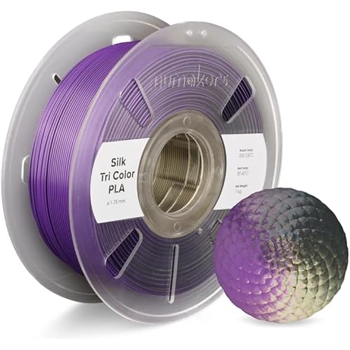 5053 reviews for Numakers Tri-Color Silk PLA Filament 1.75mm 1kg | Premium Glossy Gradient PLA for 3D Printing | Smooth Shine Vibrant Triple Tone Color Shifts | Easy to Print High Detail Finish (Black-Purple-Gold)