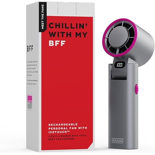 455209 reviews for NUUK BFF Hand Fan, 13000 RPM Personal Fan with IceTouch™ Cooling | 3600mAh USB Rechargeable Battery [Up to 10H] | Quiet Foldable Fan for Travel, Commute, Office, Makeup & Outdoor | 100-Speed Dial