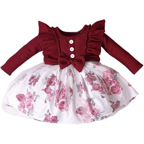 OMALI Baby Girl Dungry Dress | Long Sleeve | Infant Casual Dress | Ruffle Print Clothes