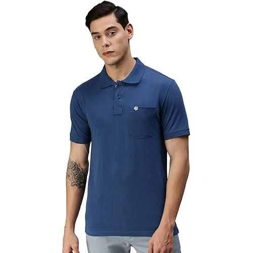 Material : 52% polyester and 48% cotton Pocket T-shirt Color : Azure To be worn as loungewear or casual tee Twill tape reinforcement on neck for enhanced style and durability