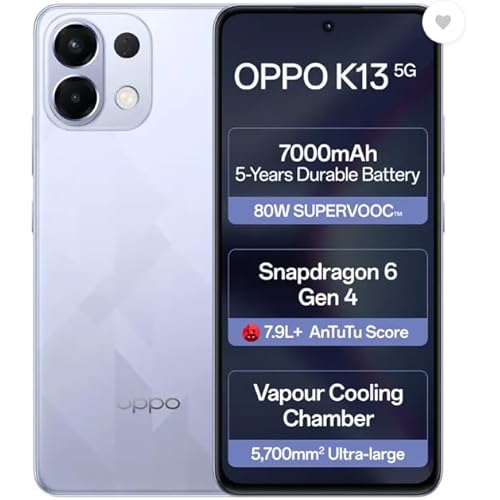 425244 reviews for OPPO K13 5G with 7000mAh and 80W SUPERVOOC Charger in-The-Box, ICY Purple (8GB, 128GB)