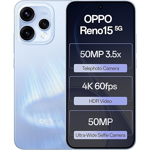 Oppo Reno15 5G (Aurora Blue, 8GB RAM, 256GB Storage) with No Cost EMI/Additional Exchange Offers