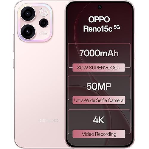 44510 reviews for Oppo Reno15c 5G (Afterglow Pink, 8GB RAM, 256GB Storage) with No Cost EMI/Additional Exchange Offers