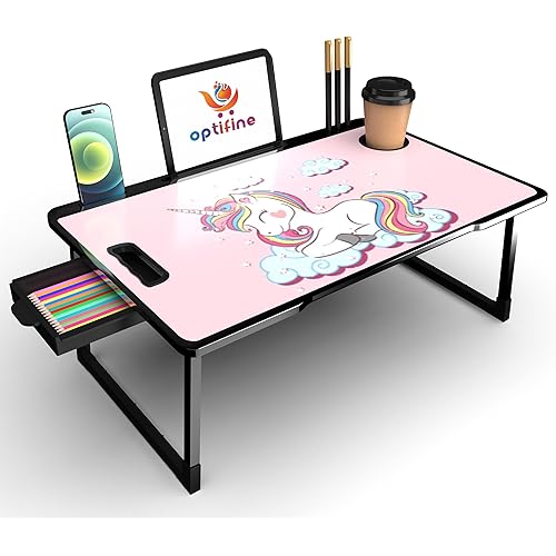 111 reviews for OPTIFINE Foldable Wooden Mini Laptop Table for Bed, Study Table with Drawer, Tablet/Mobile Holder for Kids & Adults->> (Black-US-COTTED-Unicorn)