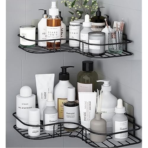 3951754 reviews for Oslen Metal (Pack of 2 Self-Adhesive Shelf/Storage Organizer for Bathroom and Kitchen Corner Wall Mounted Rack Shelf Bathroom Accessories Storage Rack (No Drilling-Shelf Adhesive) (8 and 9 INCH,Black)