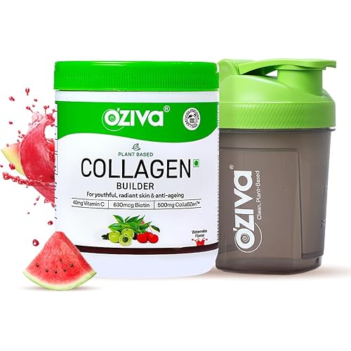 OZiva Vegan Collagen (Watermelon) with Biotin & Vitamin C For Brighter & Youthful Skin | Collagen Supplement For Women & Men | Plant Based Collagen Powder | Certified Vegan 125g + Shaker