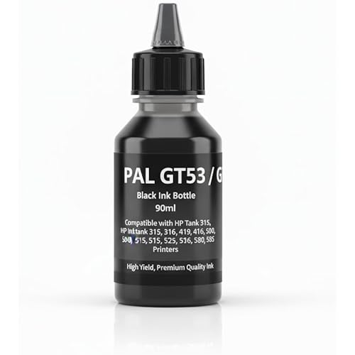 Pal GT53 / GT-53 Black Ink Bottle Cartridge 90ml | Compatible with HP Ink Tank 315, 316, 319, 416, 500, 515, 525, 516, 530, 580, 585 Printers | High Yield, Ink